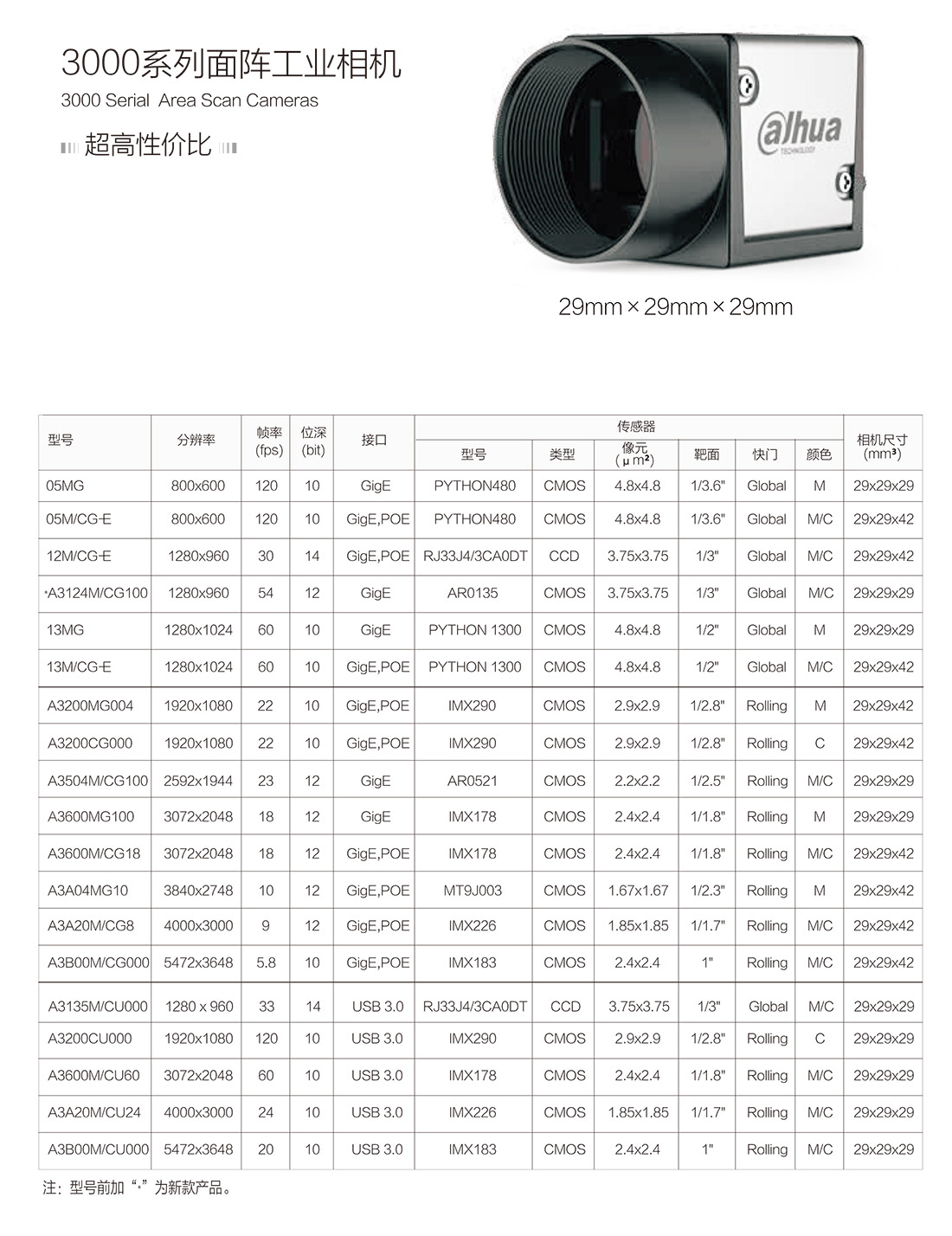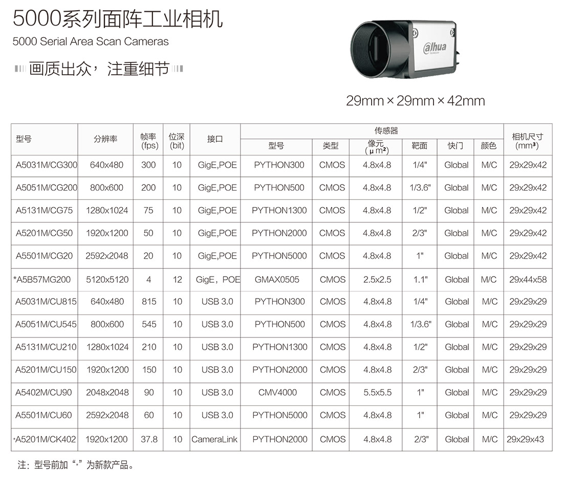 大华系列面阵相机